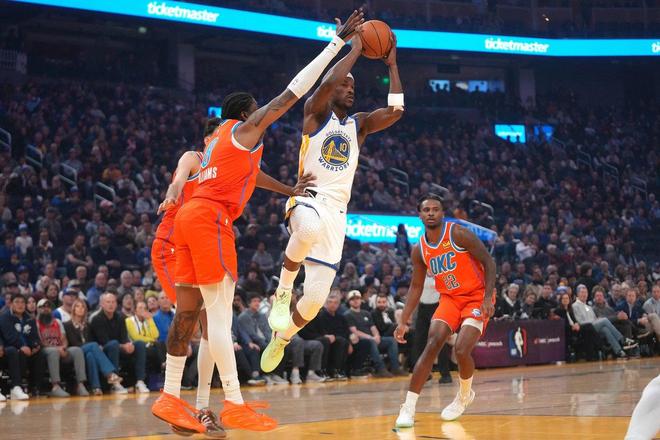 勇士队,波杰姆斯基11中6得到17分4板4助、斯潘塞14中8轰下了17分3板6助,末节连续得分。塞斯库里7中6高效的砍下了14分2板2助、格林11中5得到13分9板4助、加里佩顿二世13分5板5助、希尔德15中4,三分球9中2得到了13分1板4助2断,末节连续远投打铁。库明加10中3得到8分7板1助、巴特勒7中2得到6分3板1助、理查德5分4板2助、波斯特3分3板、穆迪5中1得到3分2板1助。